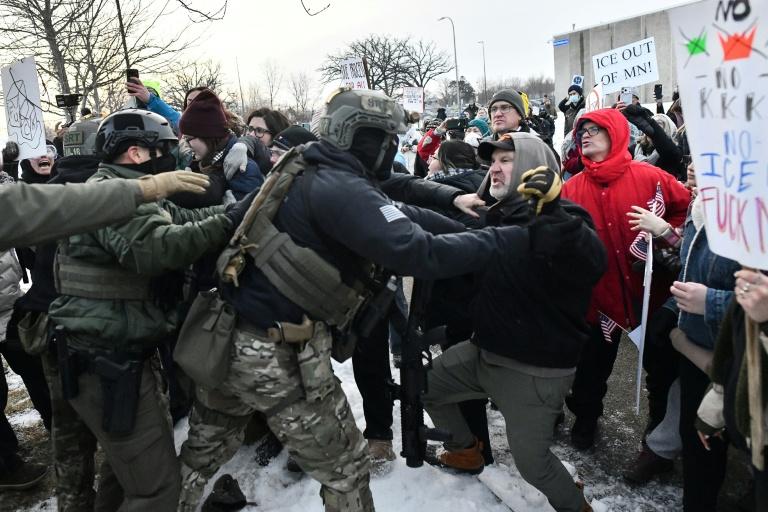 抗议群众今天在明尼阿波利斯与执法人员爆发冲突,他们高喊反ICE口号。配备胡椒弹与催泪瓦斯的联邦移民官员将多名抗议人士压制在地。