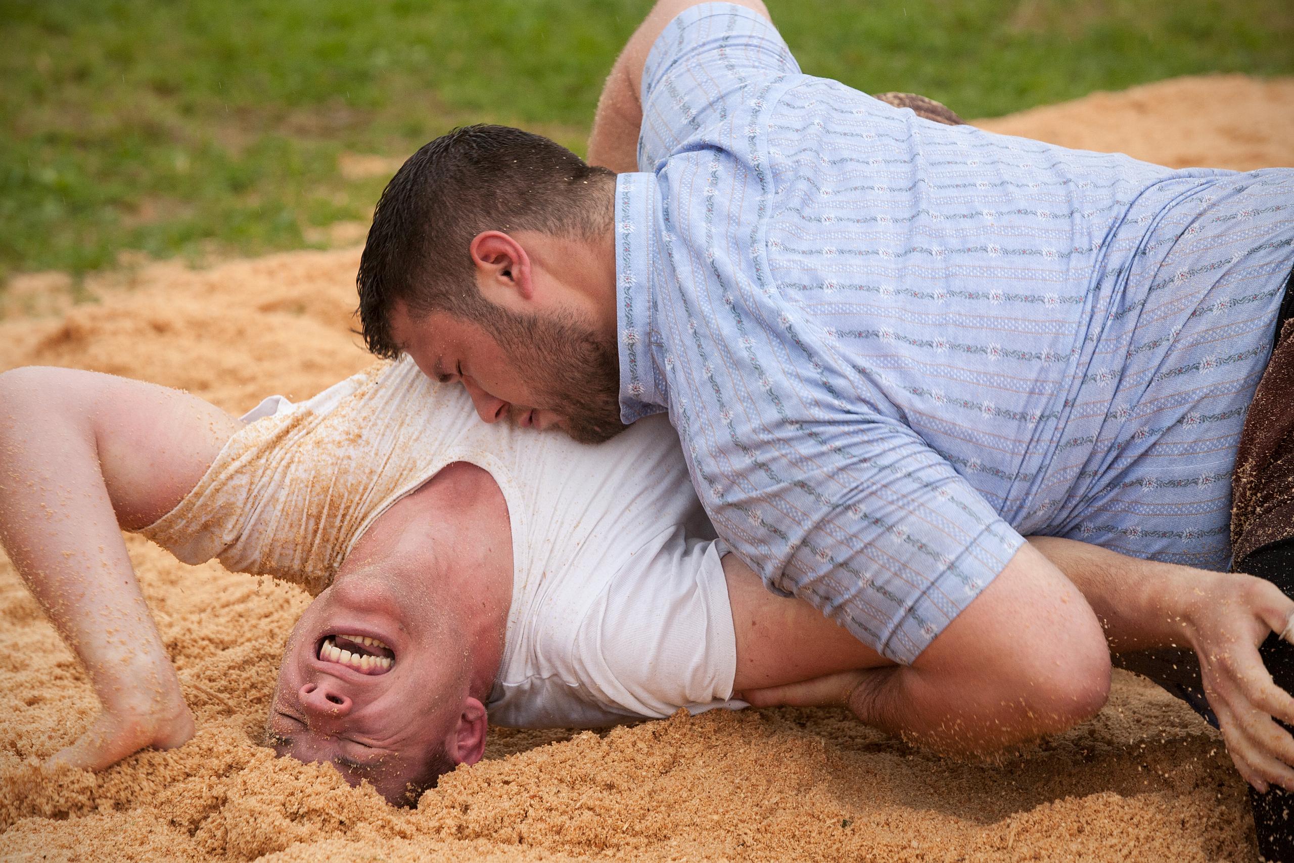 竞技场上没商量:只要你摔倒,只要你后背着地,你就输了。而胜者将像英雄般被簇拥,头戴花冠,甚至会得到一头公牛作奖品。瑞士摔跤可谓是最有传统、最受国人欢迎的运动之一。而这项运动也欢迎外国选手的参加。