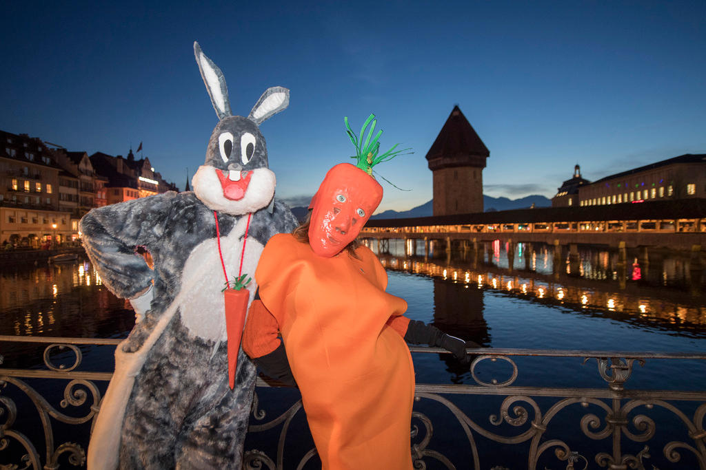 铺满鹅卵石的卢塞恩狭长街巷,平日里人迹稀少、相对静谧,却忽然在“油腻星期四”(Dirty Thursday)清晨5点时分,迎来了1.6万名游客及市民鱼贯而出、项背相望的空前盛况。在这一盛大的嘉年华庆祝活动中,许多人换上了一身颇具戏剧性的瑞士古装,让围观者也体验了一把穿越剧之旅。