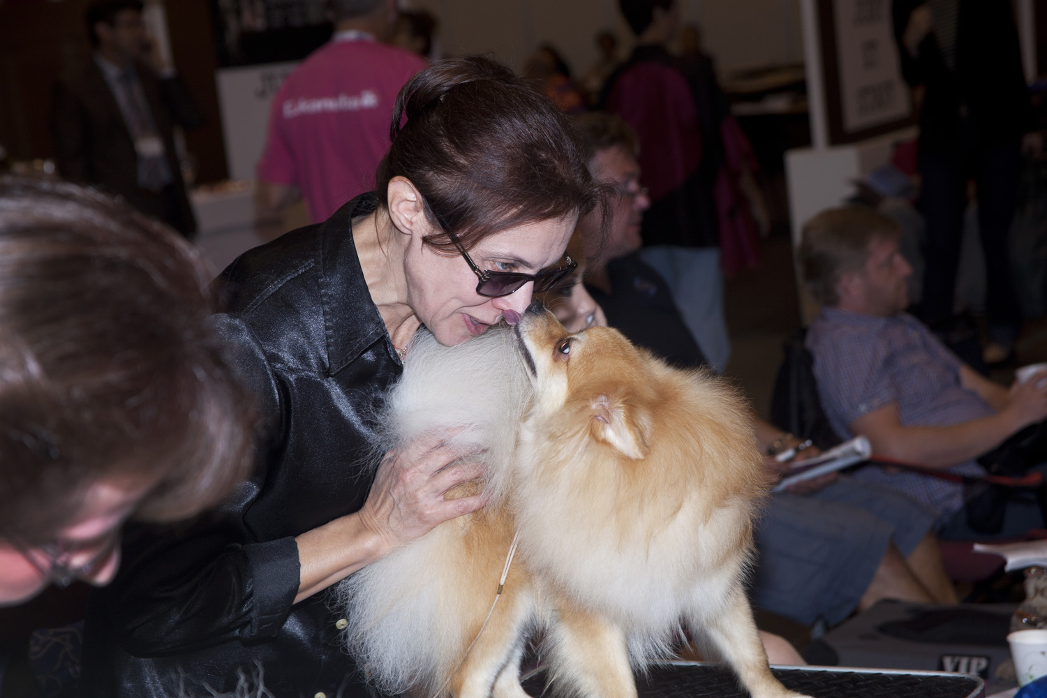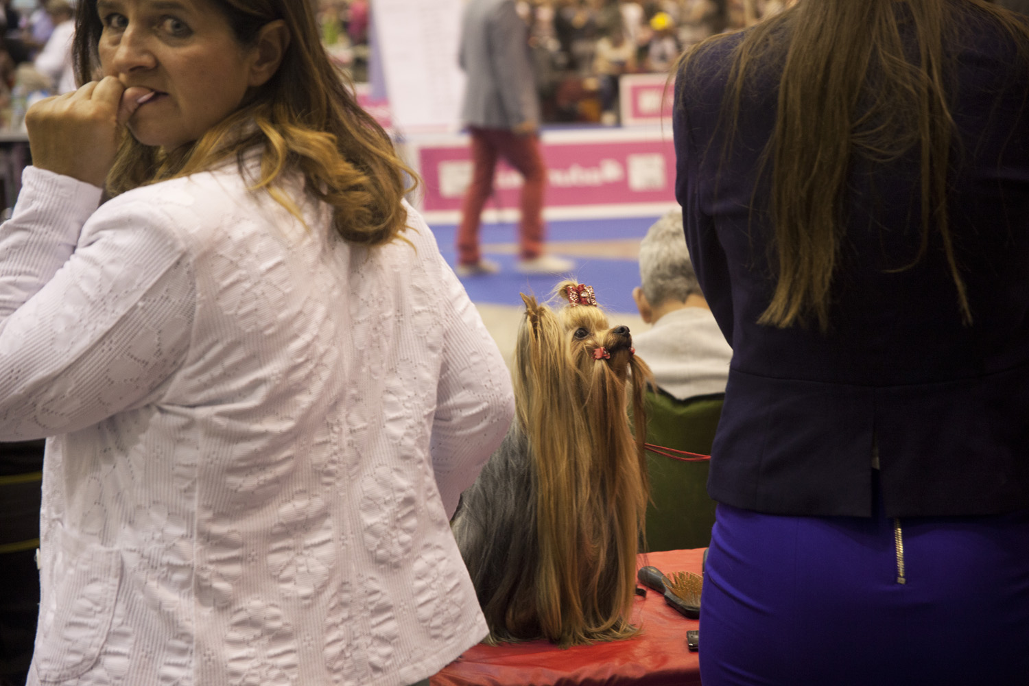 本次欧洲“宠物狗选美赛”会场的核心区便是国际评委们的评审台,每只狗都要在这里接受评委们的遴选。评判标准颇为细致:是不是立耳、胸脯是否挺拔、瞳孔颜色如何、牙齿是否整齐、腿间距大小… 和人类选美一样,选手的动、静态风姿都要展示,肢体动作是否流畅也是考核项目之一。