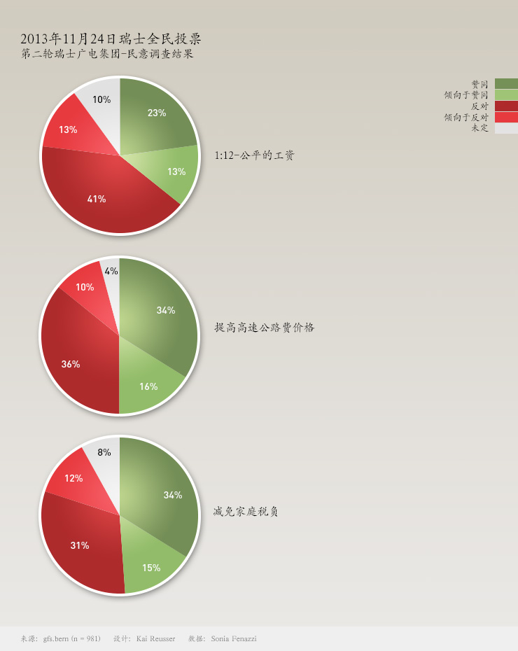 在距11月24日全民投票日还有将近三周之时,三项议案赞同和反对的声音与首轮民调结果发生了意料之外的变化,所有三项议案的反对者均有可能赢得投票。