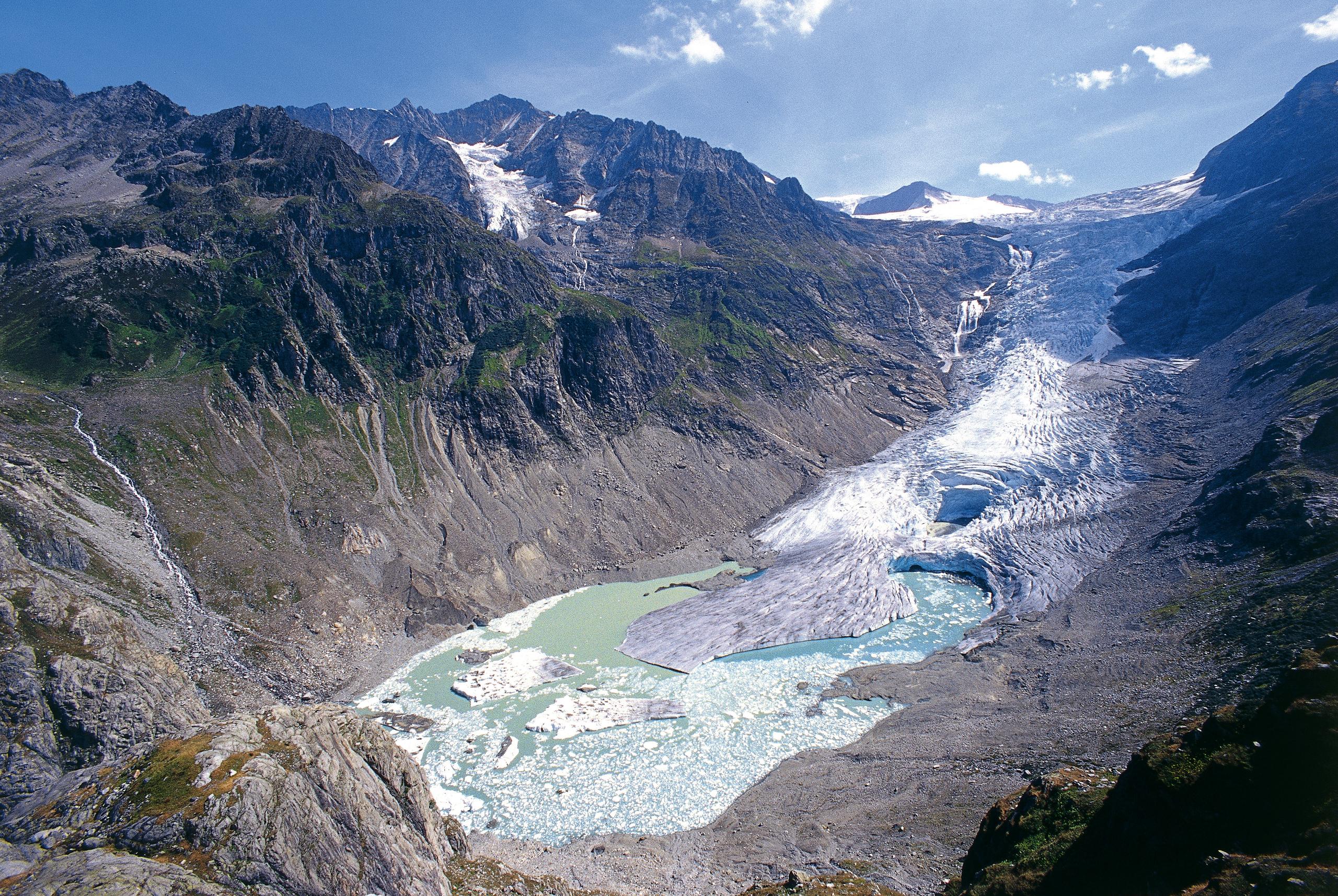 “特别是阿莱奇(Aletsch)地区那些大型冰湖,这都是要面对的新情况。对布里格(Brig,阿莱奇冰川下游的一座城市)的居民来说,他们从未受到过‘头顶’这样大一座湖的威胁,但是今后他们可能会‘顶’上好几座,”Haeberli警告说,并且提出政府应开始考虑应对措施,例如修建防止水土流失的系统性工程。