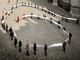 9月24日,瑞士生物信息学研究所(Swiss Institute of Bioinformatics,简称SIB)蛋白质序列数据库(Swiss-Prot)小组的成员们在伯尔尼(Bern)大教堂外展开了一卷写满目前人类所知20325种人类蛋白质描述的长幅,以庆祝该研究所的10岁生日。