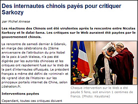 相关内容 瑞士政治 瑞士《20分钟》报道《中国网民收费批评萨科奇》的真相 此内容发布于 2008年12月22日 报道称:萨科奇与达赖喇嘛会晤之后,中国人的反应非常强烈。中国网民批评萨科奇可能收到中国政府相应付费。每条在线批… 更多阅览 瑞士《20分钟》报道《中国网民收费批评萨科奇》的真相