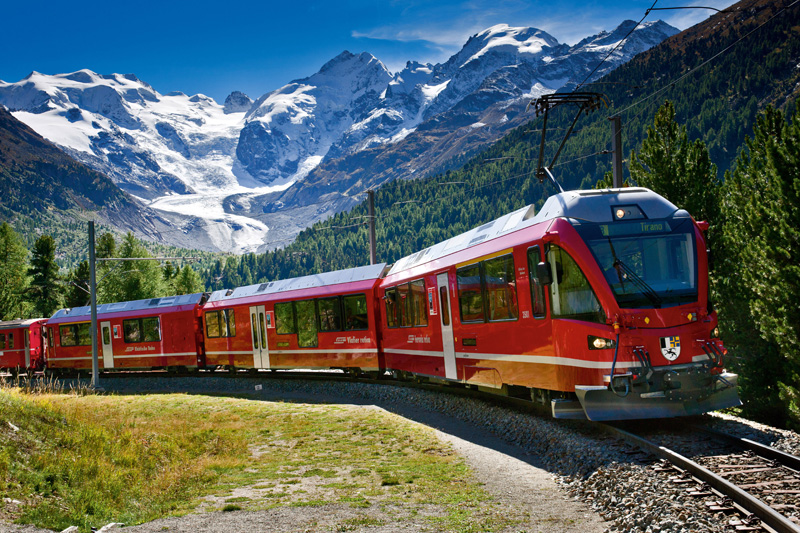 瑞士有4条线路的全景观火车:金色山口快车、冰川快车、伯尔尼纳快车、威廉泰尔快车。冰川快车和伯尔尼纳快车是所有人都必须预订并交预订费的。