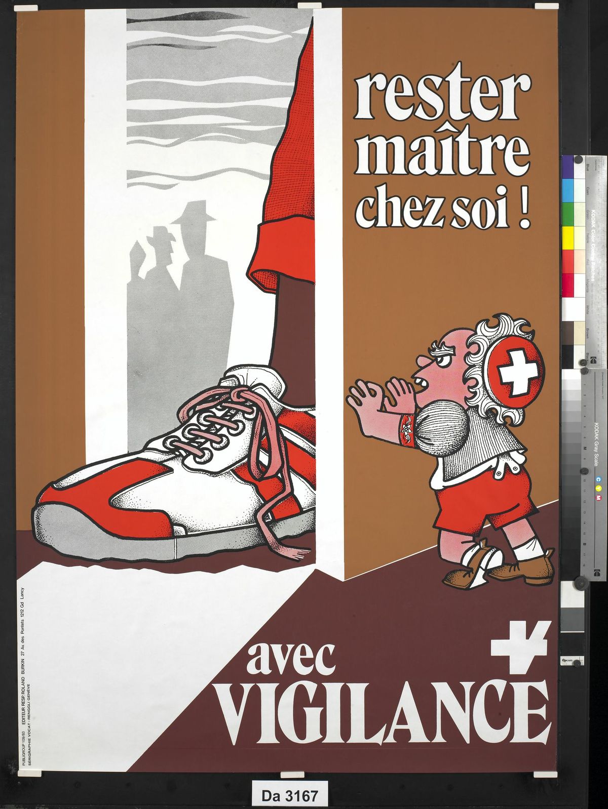 小小的瑞士难以撼动试图挤进来的外国大脚。日内瓦Vigilance党在1983年推出的海报,将瑞士描绘成一个“小个子”。(Ginevra BGE)