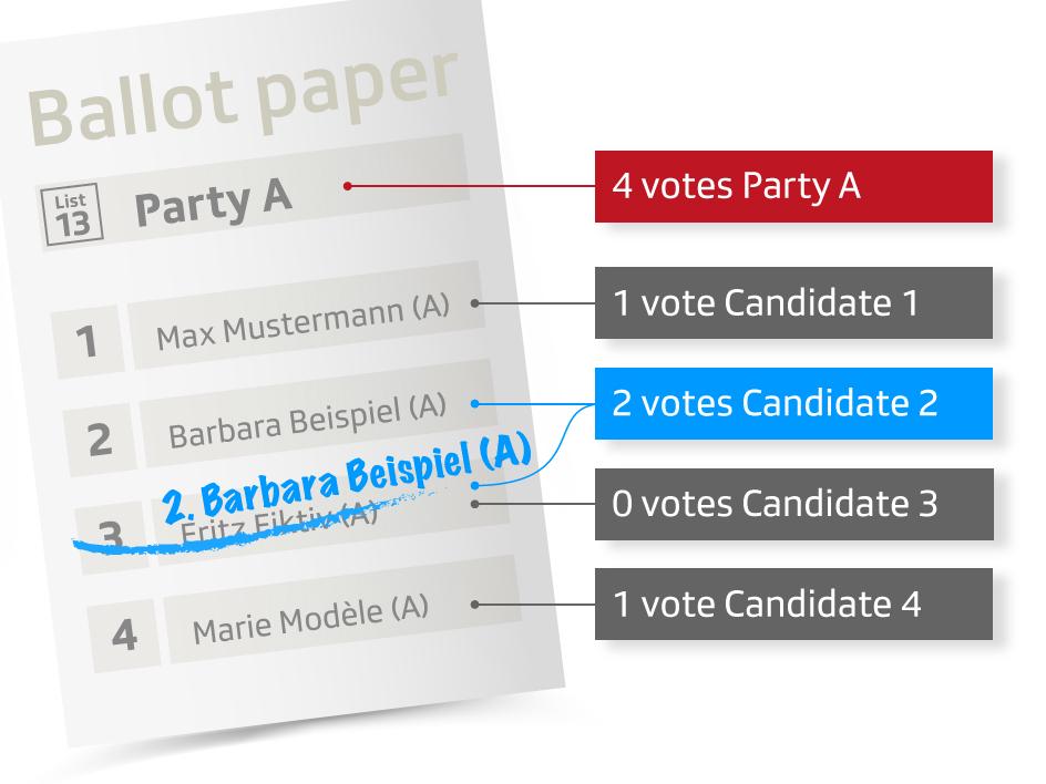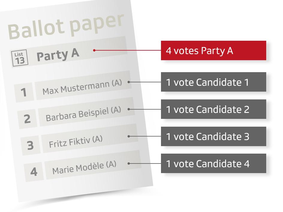 List combinations are supposed to correct this. They allow for combinations that create an ostensibly larger party that has better chances of winning a seat. This allows small parties in particular to counteract the distortion. Within a list combination, though, the party with the most votes tends to win, according to Bochsler.