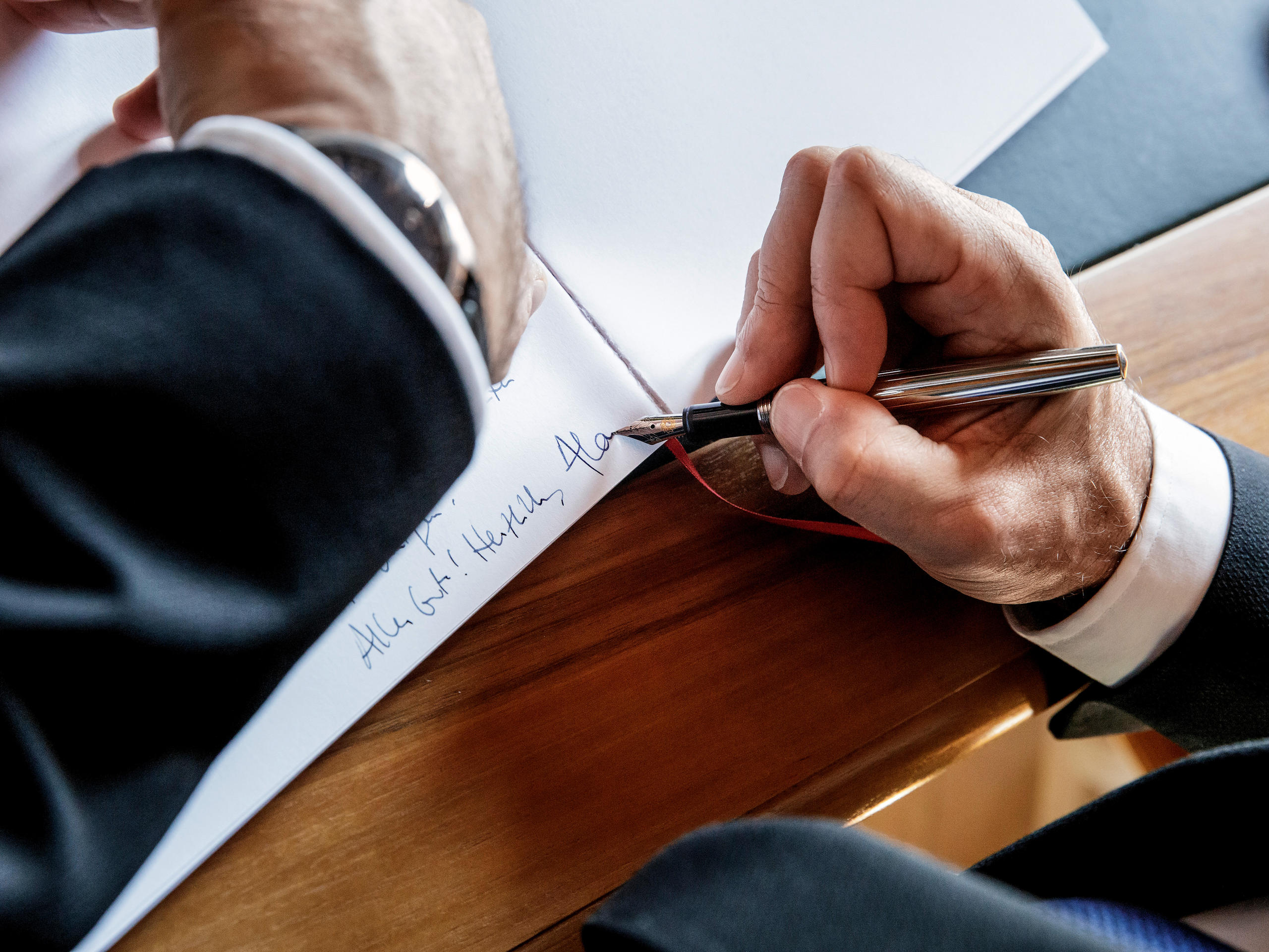Ein Mann unterschreibt ein Dokument