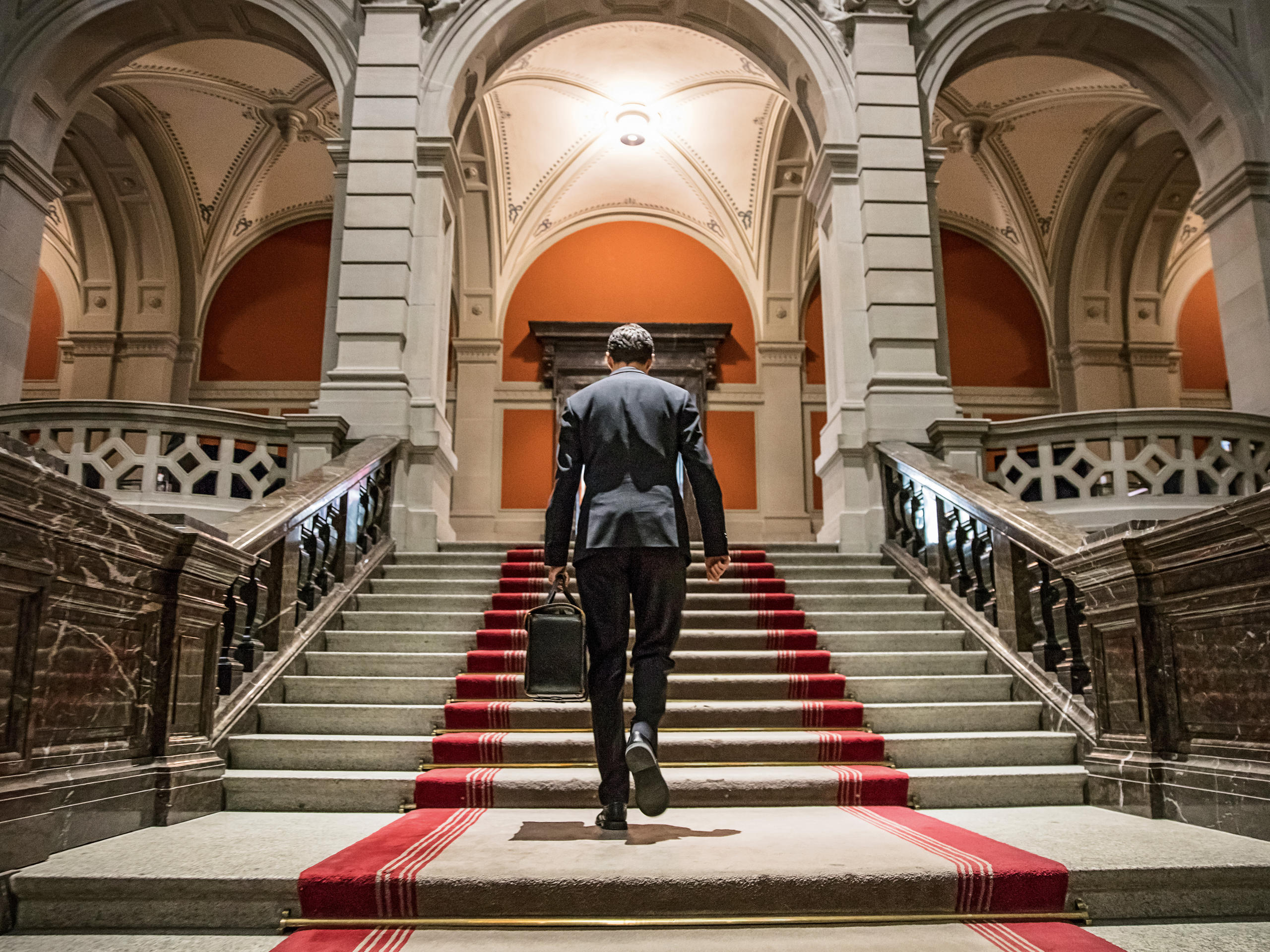 Ein Mann geht die Treppe hoch