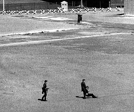 1971: East German border guards drag back an injured East German shot trying to flee. Between 1961 and 1989 around 5,000 people attempted to escape, resulting in an estimated 100-200 deaths. (Keystone)