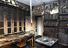 The synagogue lost its entire library in the fire, which took hold after petrol bombs were reportedly hurled at the building.