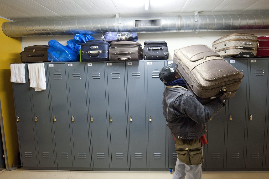 A refugee from Gambia stows his suitcase at an asylum center Keystone
