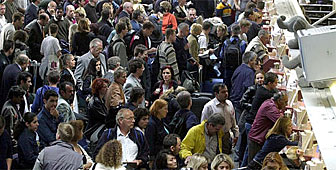 At Charles de Gaulle airport outside Paris, crowds were so large that Air France ticket staff stood on top of check-in counters to call out passengers’ names from waiting lists.