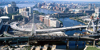 Designer Christian Menn conceived the bridge as a symbolic landmark linking Boston’s future with its historic past. His intention was that it should reflect, with its inverted Y-shaped towers, the shape of the Bunker Hill monument in nearby Charlestown.