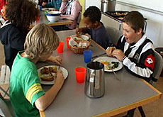 The children who are staying for lunch start to file in, dumping coats and backs on the floor and hastily changing their shoes outside the cubbyholes. They greet the carers politely and, after washing their hands, take a seat.