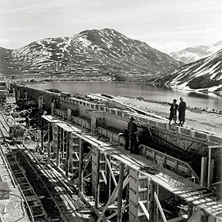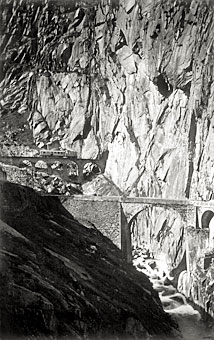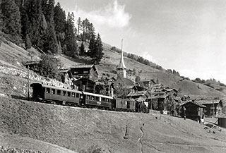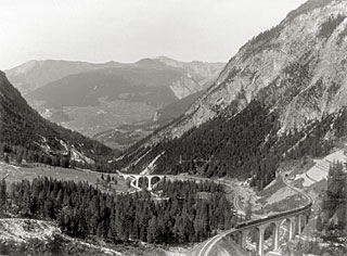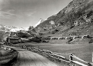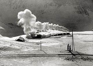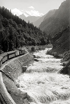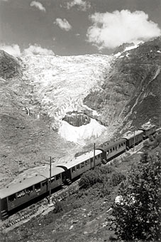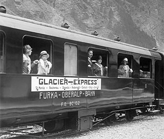 The train journey through the magnificent high mountain landscape between the Valais region and the Engadine valley enjoys enduring popularity. The Glacier Express is celebrating its 75th birthday in 2005. Historic photographs from the first half of the 20th century illustrate a book by Paul Caminada and Peter Pfeiffer documenting the period before panorama trains were introduced on the Zermatt to St Moritz line. “On the tracks of the Glacier Express” was published by the AS publishing house of Zurich.