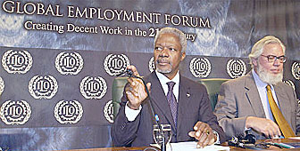 The employment forum comes just a week before the World Trade Organisation (WTO) ministerial conference in Doha, and Somavia is hoping that any new round of trade liberalisation negotiations that might be launched at that meeting will do more than the previous Uruguay round in taking into account the needs of poorer countries.