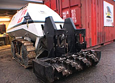 The four-ton, remote-controlled Digger-1, which is a cross between a tank and a lawnmower, can eliminate the danger while its operator remains out of harm’s way.