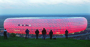 Alongside a whole series of significant projects (such as the extension of London's Tate Modern Gallery), Basel architects Herzog & De Meuron conceived Munich's new stadium, the Allianz Arena. (Keystone)