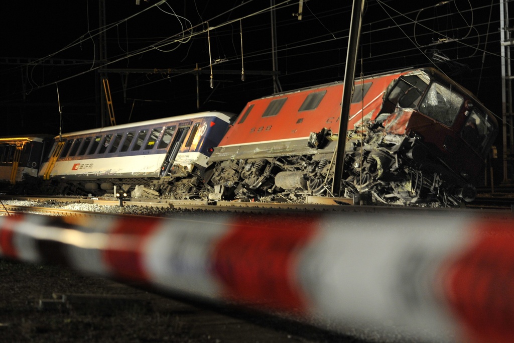 The incident occurred around 6pm on Thursday near Olten station in northern Switzerland when two trains arriving and leaving within one minute of each other collided sideways.