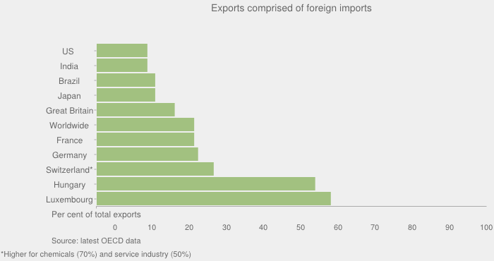 World trade is increasingly made up of global supply chains that make individual countries' exports heavily reliant on imports.