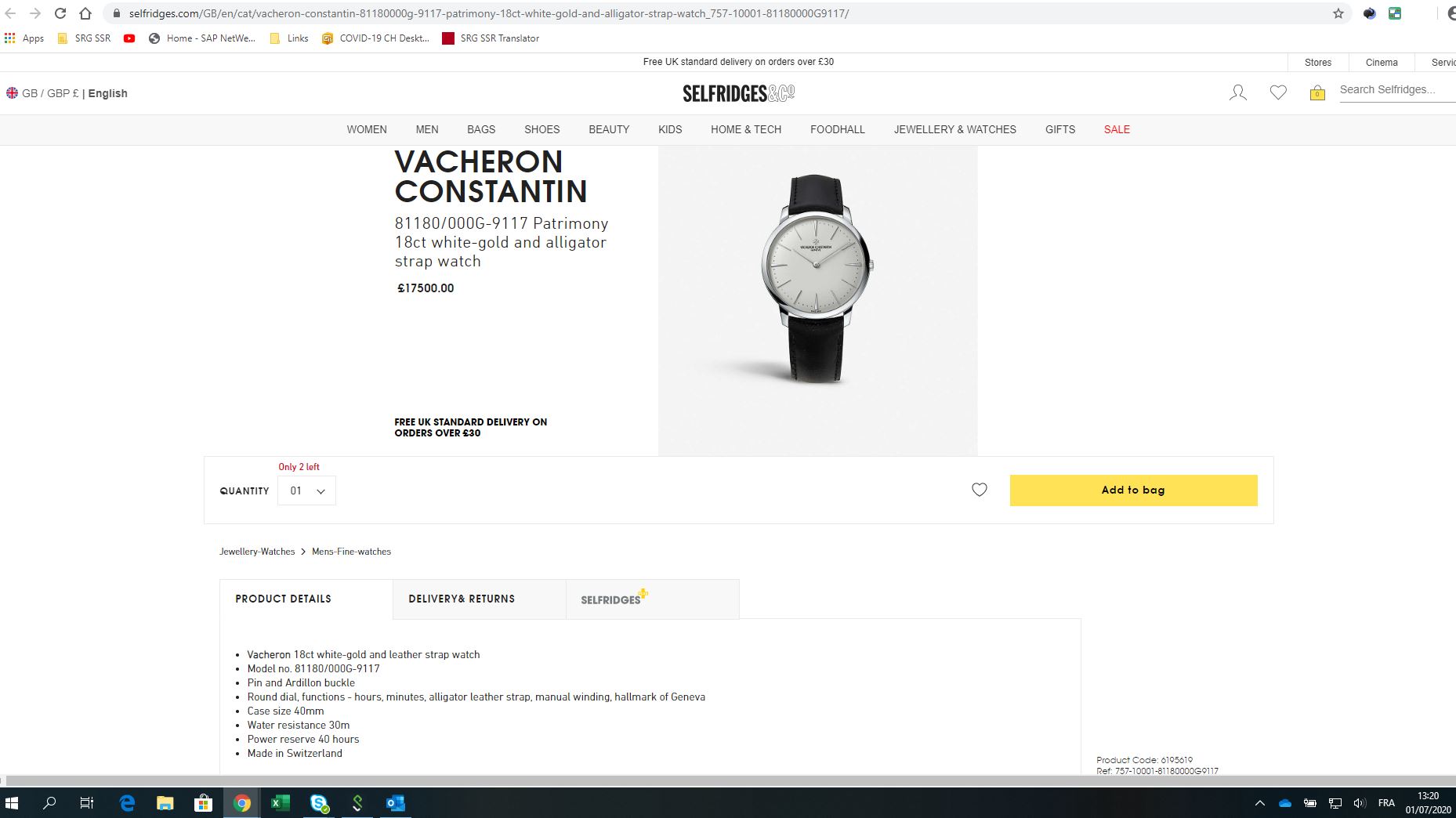 Many high-end brands have said no to exotic reptile skins in recent years. For example, London upmarket retailer Selfridges announced that they would no longer stock products that use exotic skins like alligator, crocodile or python from February 2020 onwards. However, watch straps appear to have escaped their notice. As of July 1, Selfridges’ online store was selling 13 luxury Swiss watches with alligator straps: six Vacheron Constantin models, three Zenith, two Longines, one Girard-Perregaux and one Carl F. Bucherer.
