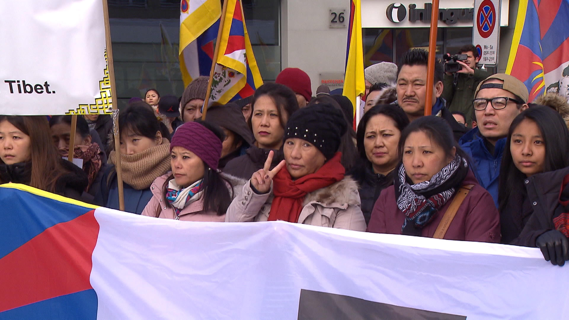 Over 400 Tibetan demonstrators protested on Sunday morning against the Swiss state visit of Chinese President Xi Jinping in the Swiss capital Bern. They were not allowed to protest in front of the Swiss parliament.