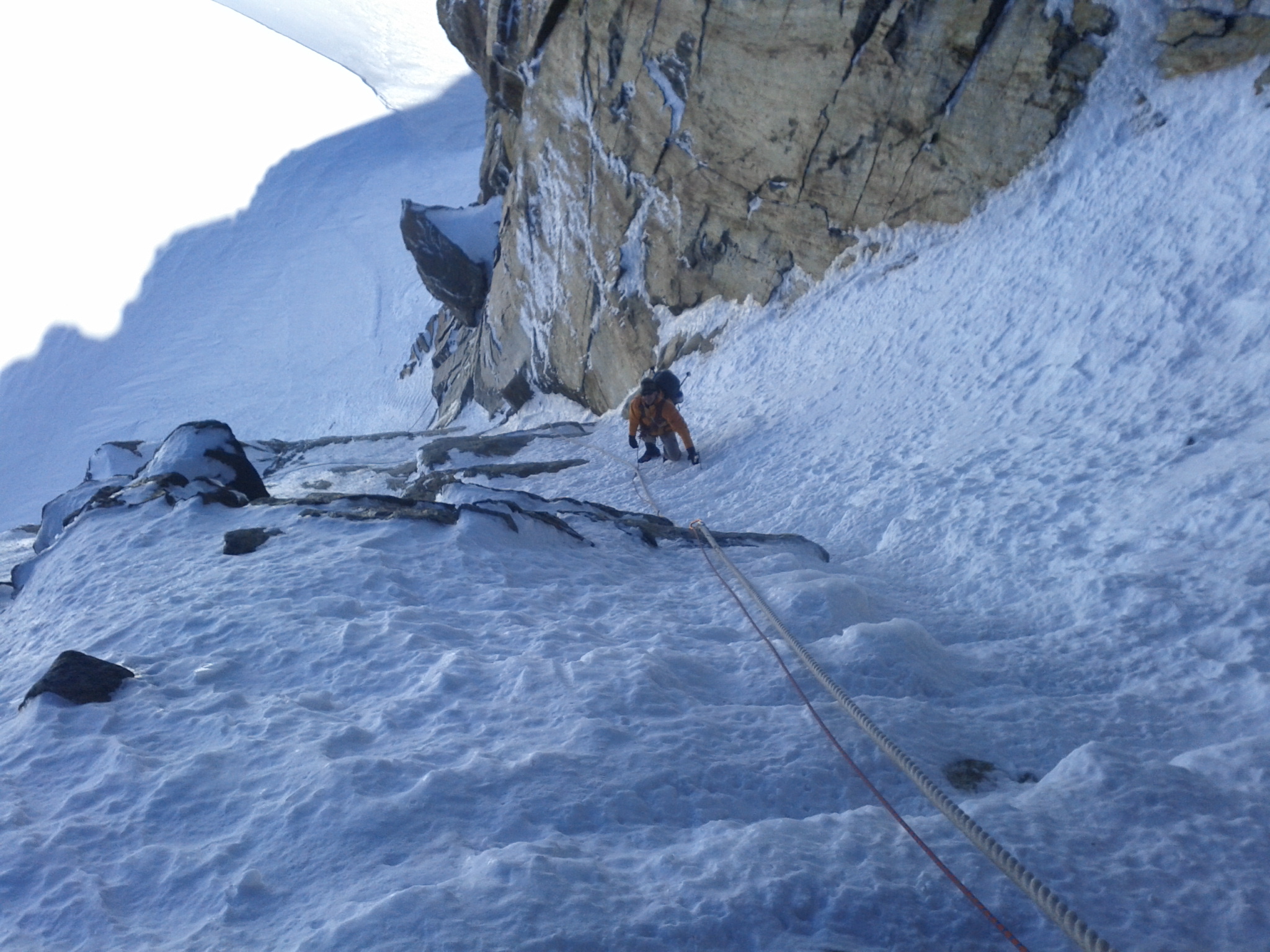 The summit traverse was also more challenging than expected, with quite a bit of rock climbing in crampons. After that came knife-edge aretes of snow with a good track from previous parties.