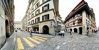 Nicolas Kyramarios sets up his camera in the old town of Berne. It’s a special camera, which takes 360-degree photographs. The pictures will form part of a virtual tour of the old town on CD Rom.