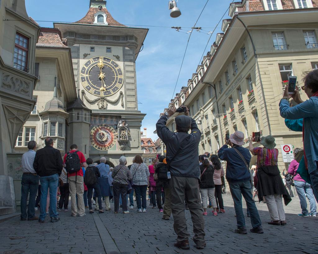“No, we’re not shopping. We’re just sightseeing,” said a pair of Chinese women standing in front of Bern’s Zytglogge clock tower one summer afternoon. They were among the crowd of visitors who had gathered for the hourly spectacle of the crowing cock and the dancing bears.