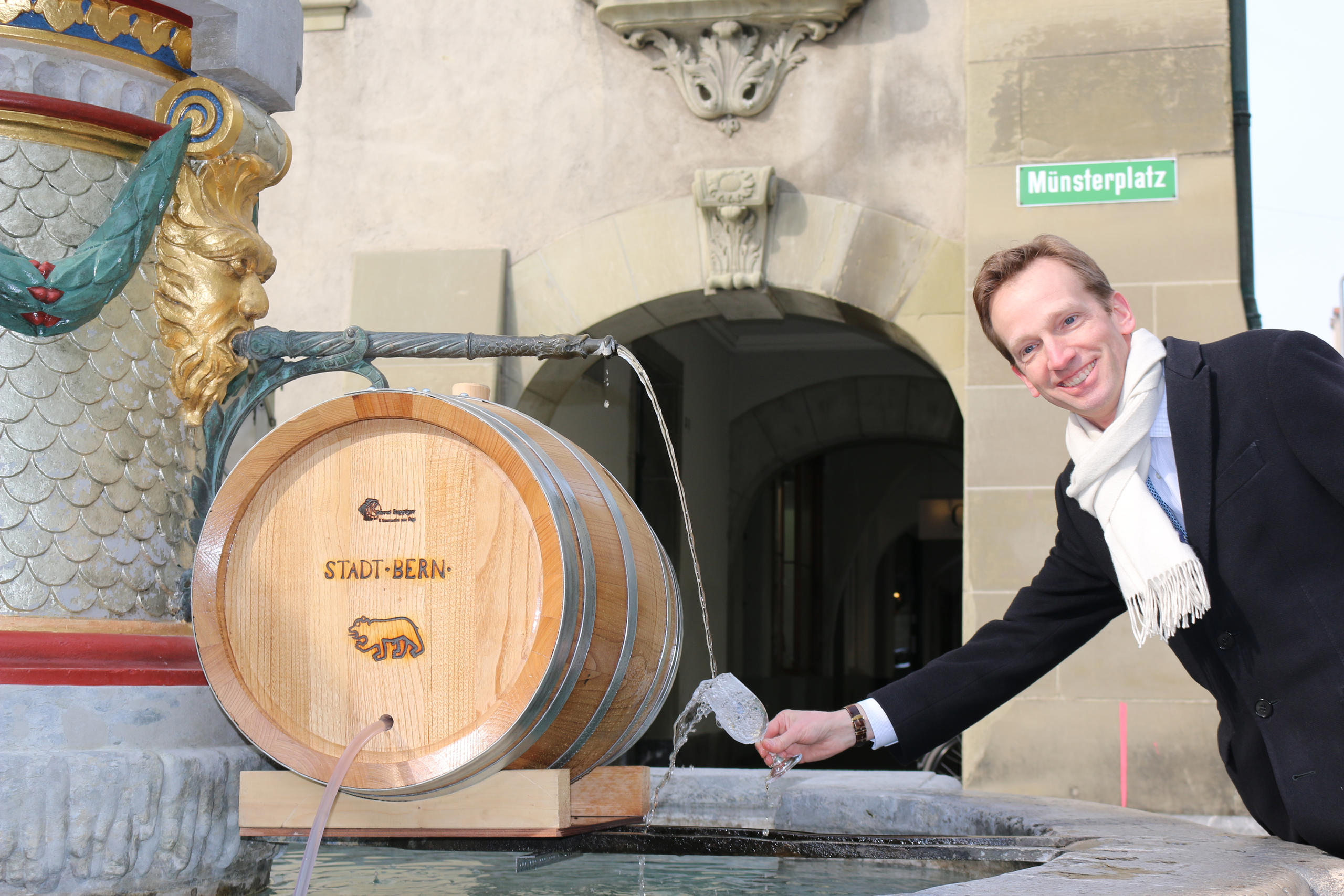 What sounds like a wine-lover’s dream became reality in Bern on Tuesday evening: wine gushing from a fountain in Bern’s Old Town for the first time since 1848, when Bern was chosen as the Swiss capital and a federal constitution was created.