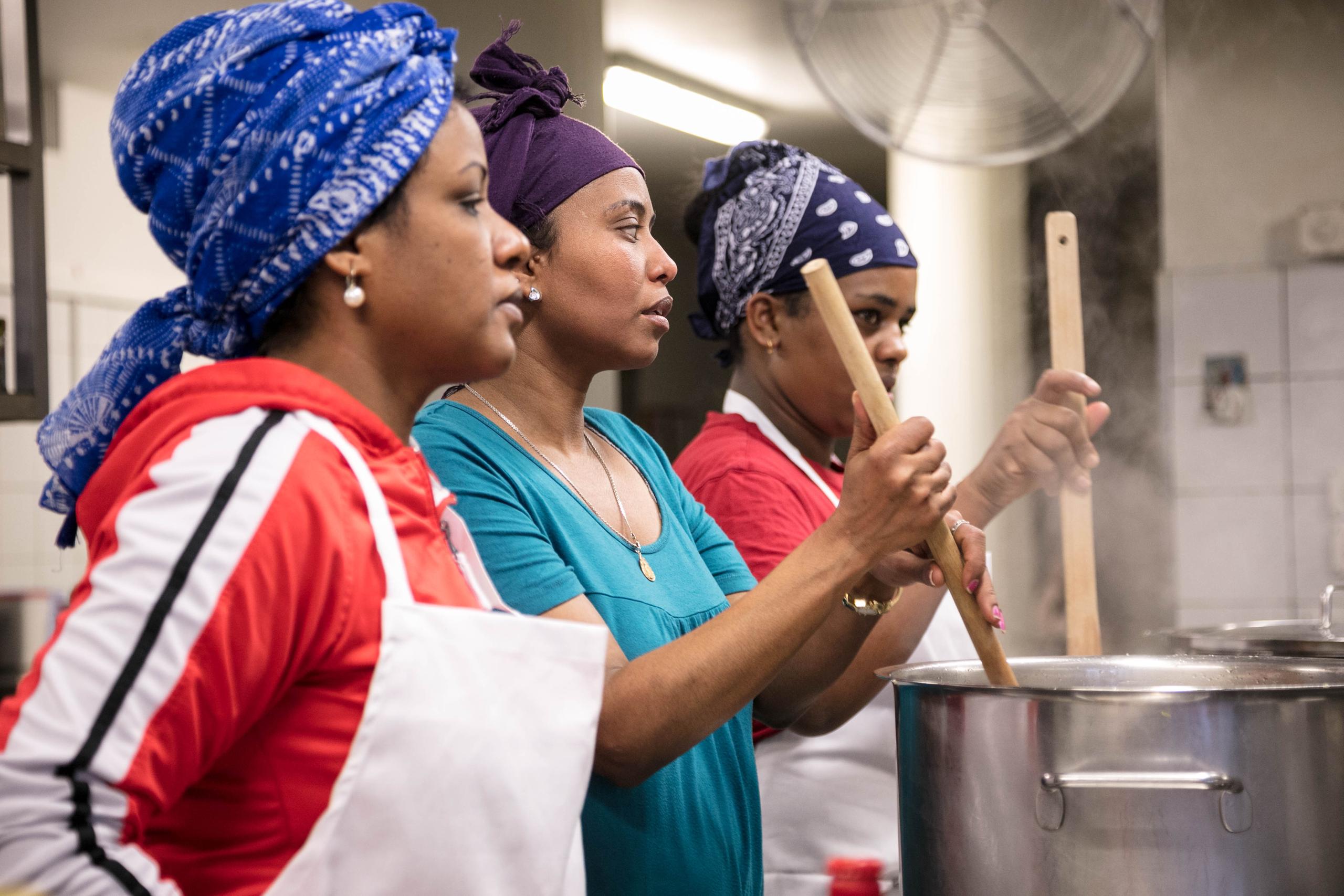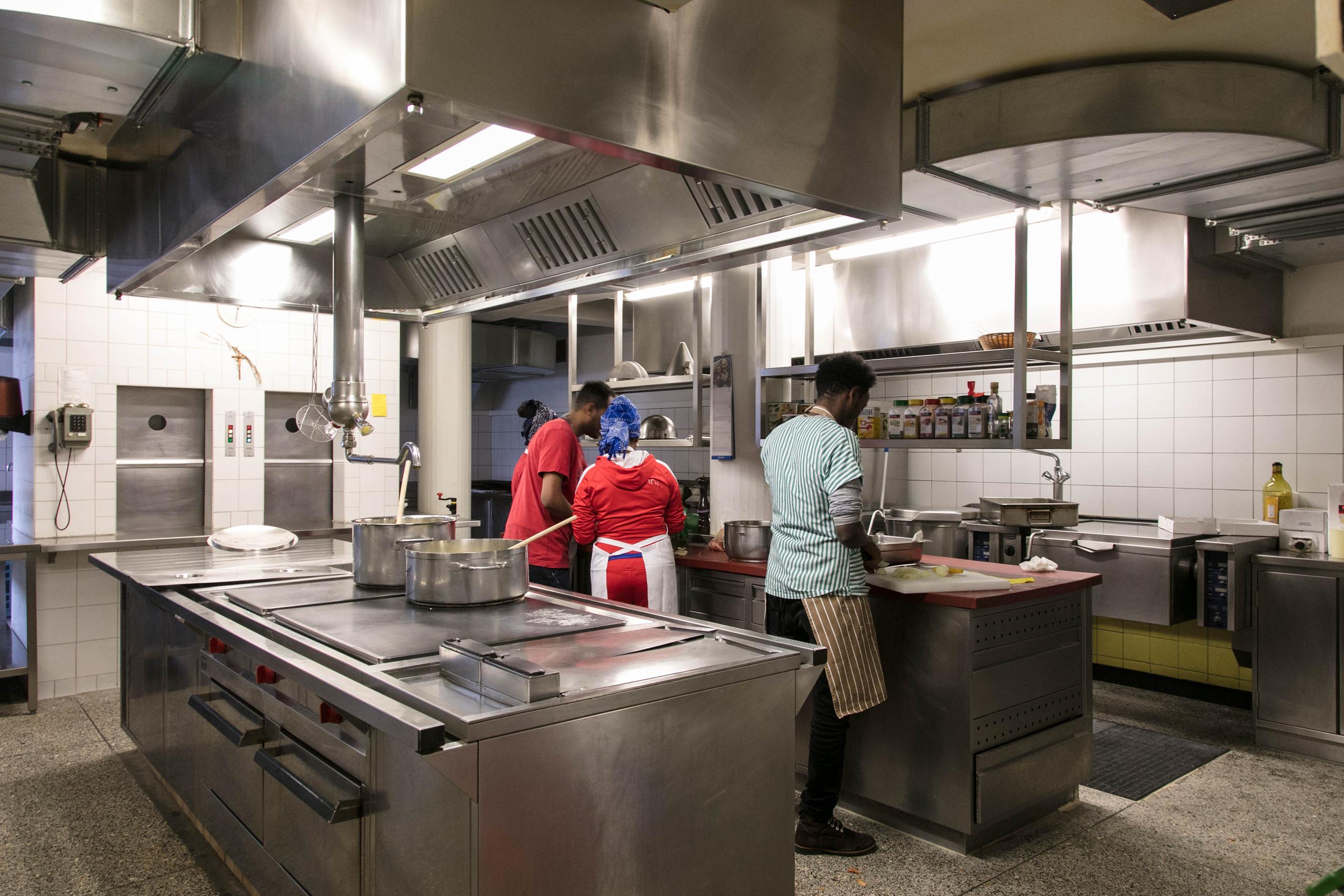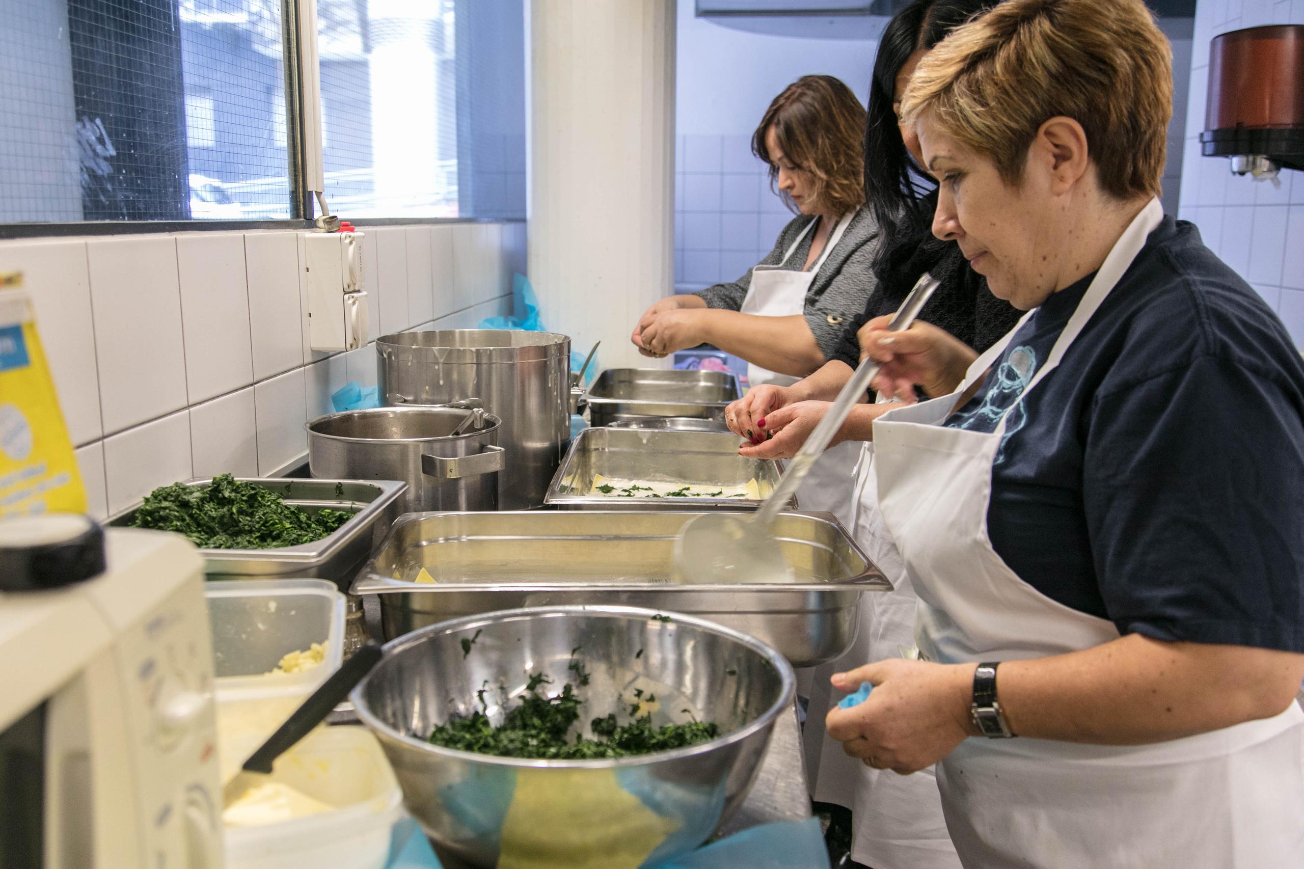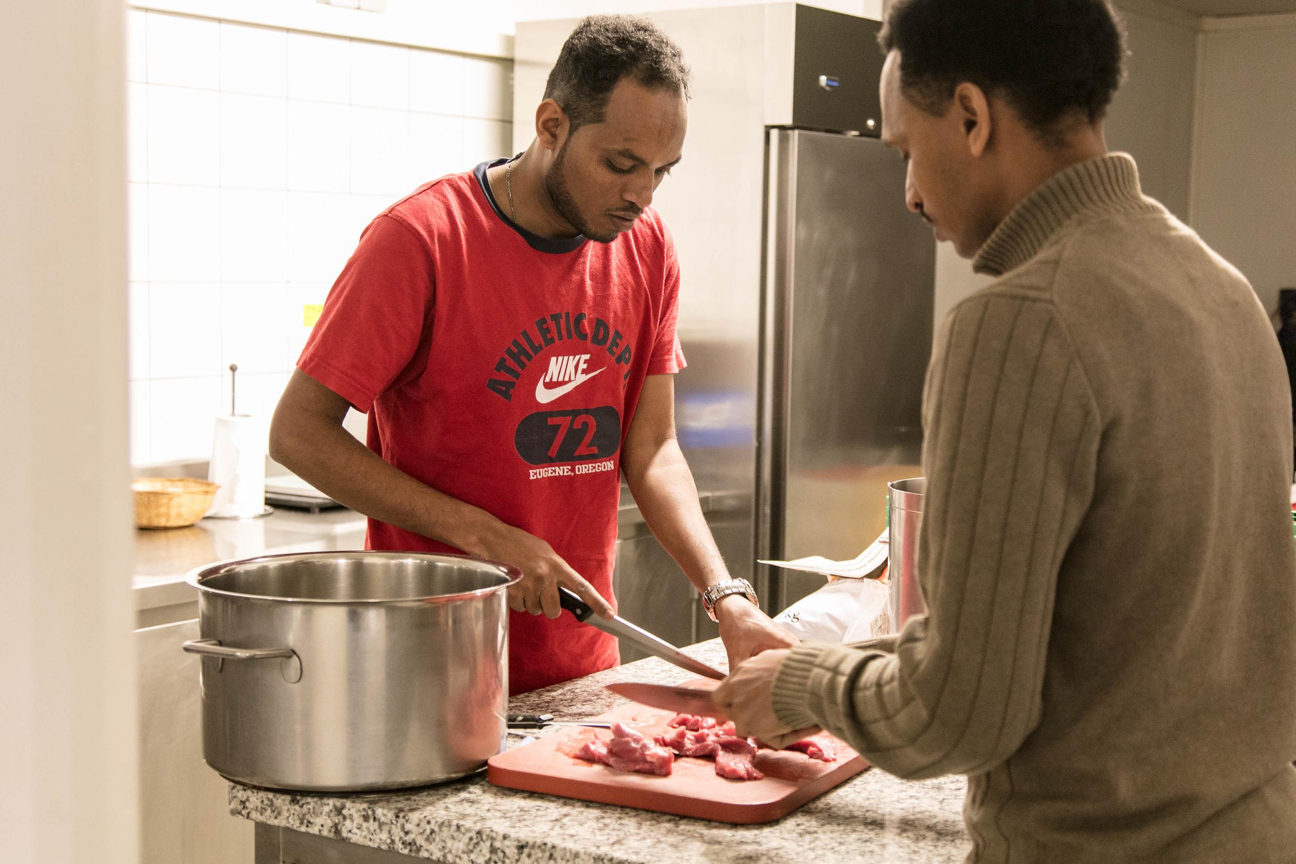 Everyone has their job to do in the kitchen of Bern’s Catholic mission. While young Eritreans work their magic with spices, Italian women show off their lasagna-making skills. Members of both communities get a taste of each other’s food culture at the dinner that follows.