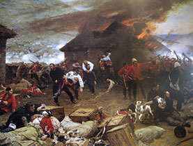 Some 150 British and colonial soldiers successfully defended their garrison against an intense assault by 4,000 Zulu warriors. More than 300 Zulus died, compared with only 15 members of the British force.