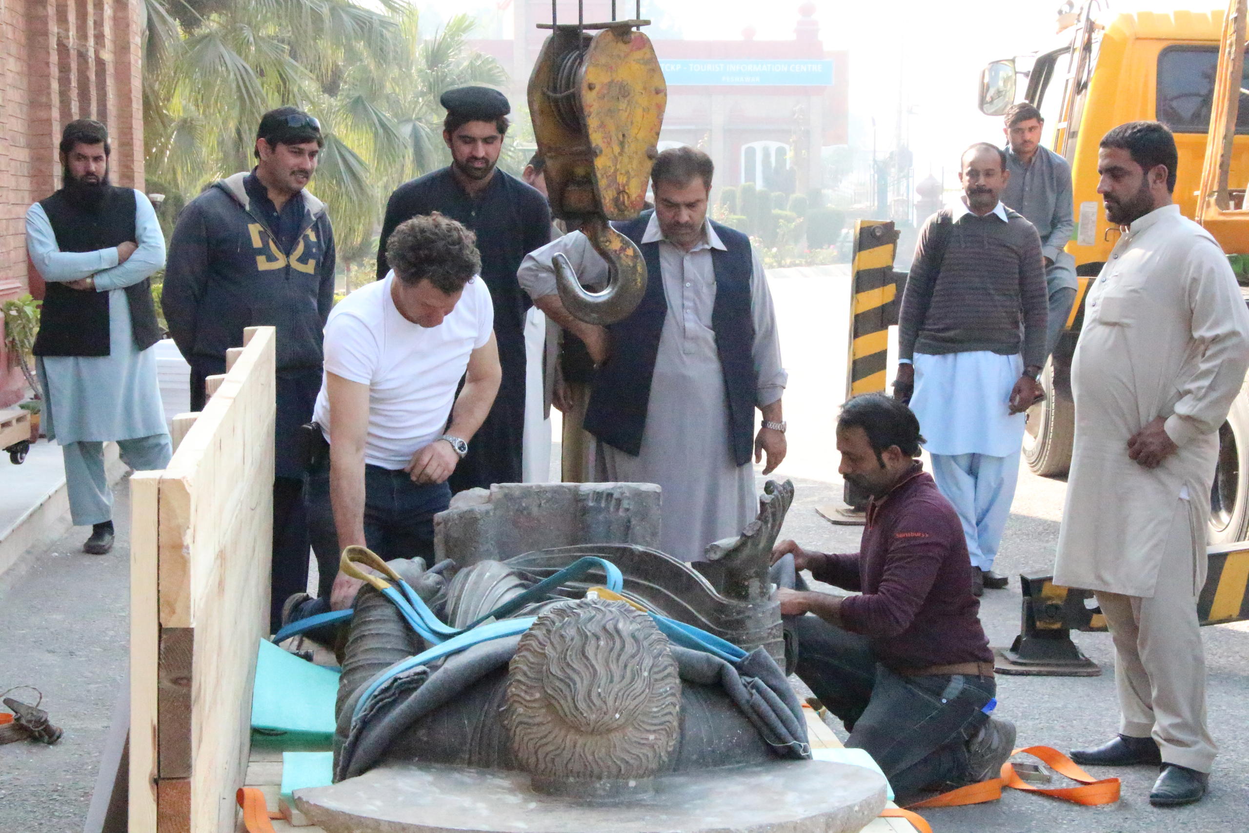 The next difficulty was finding someone who could supervise the delicate operation. There was no local expertise for such a task and the museum had to hire Swiss stone conservator Tobias Hotz to handle the safe removal of the statue from the Peshawar museum. It proved to be a good decision as the operation would prove to be more complex than expected: The Buddha was fixed to the wall.