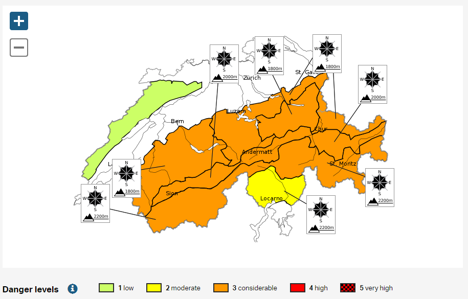 Since 1945, the national avalanche warning service, run by the Institute for Snow and Avalanche Research (SLF) in DavosExternal link, produces a twice-daily national avalanche bulletinExternal link using data gathered by 200 people trained to do the job and 170 automatic measuring stations dotted across the Swiss Alps. This information is shared and used by the police, cantons, communes, mountain resorts, rescue services and other winter professionals across the country.