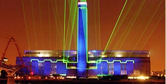The new Swiss Light, financed by the Swiss foreign ministry, was turned on at a late night ceremony on Thursday ending a day of celebrations for the opening of the world's largest modern art museum, Tate Modern.
