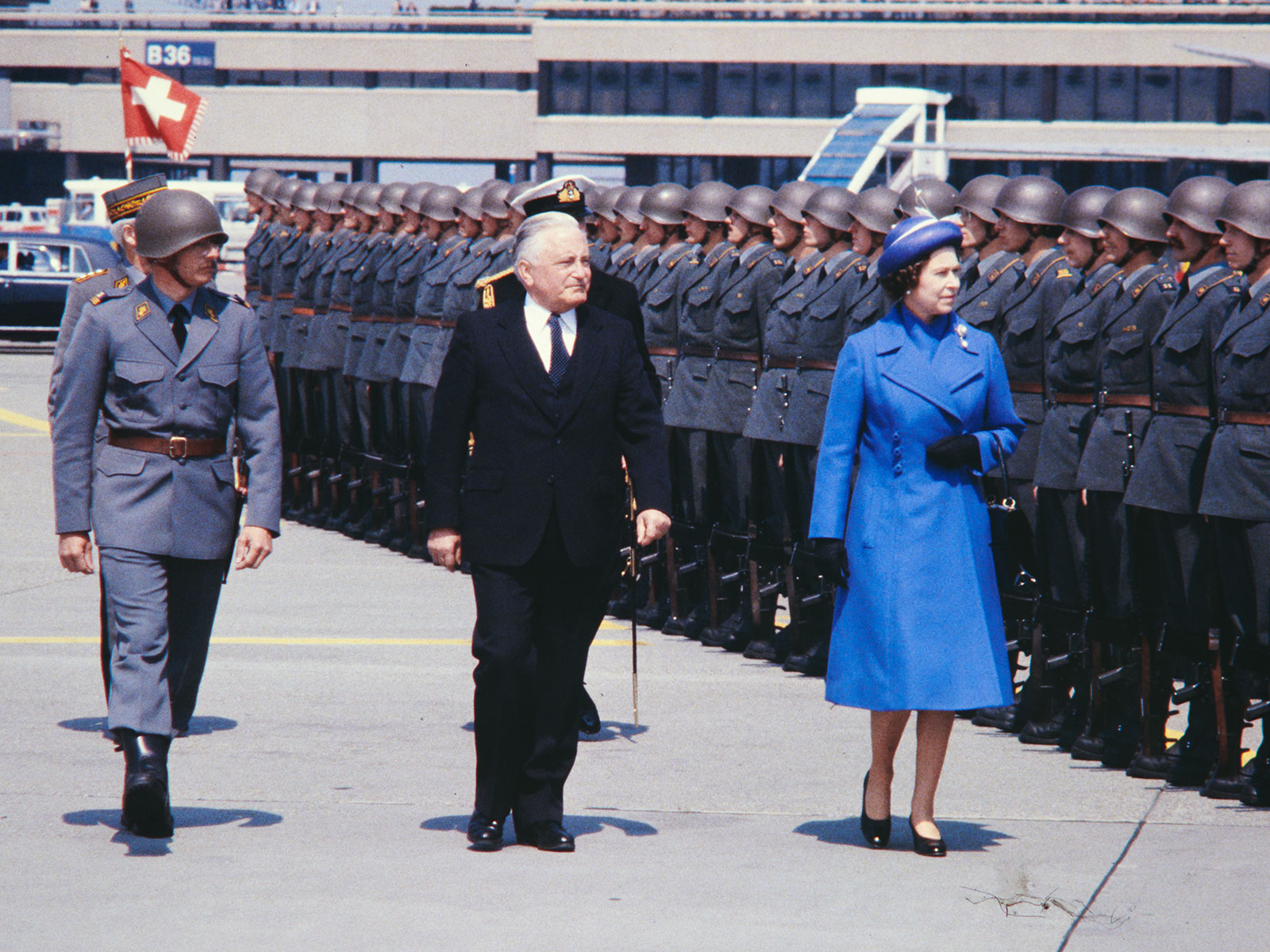 Another example: when the UK was increasingly isolated and struggling with economic problems during the Falklands crisis, at the end of April 1980 Queen Elizabeth II came to Switzerland with her husband, Philip – incidentally, this was the only official state visitExternal link to Switzerland by a British royal. Despite IRA bomb threats and despite eruptions of unrest among groups of Swiss youth, the royal couple visited Zurich, Bern, Basel, Lausanne, Montreux, Lucerne and the RütliExternal link. Even if there were catcalls and boos from members of the youth movement and people opposed to the British rule of Northern Ireland, the majority of the Swiss were very taken with the Queen on her Tour de Suisse, and even more enchanted by Prince Philip, who waved back with much more genuine feeling and was even able to have a good laugh.