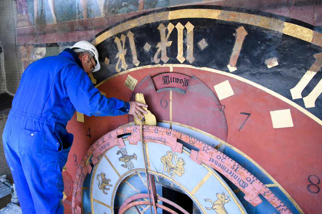 The clock’s roof and façade will be renovated, and the instrument for measuring altitude – the astrolabe – will also be cleaned. The Zytglogge will remain covered in scaffolding during this time.