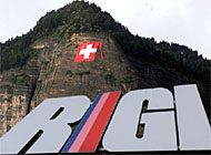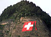 The huge flag measures 25 x 25 metres and weighs 600 kg. A team of 15 local mountain climbers needed a full day to unfurl its five component parts and anchor them to the steep cliffs of Mount Rigi, which is a popular tourist destination in itself.