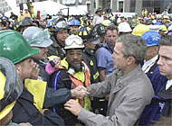 The US president, who was accompanied by New York’s mayor Rudolph Giuliani and New York Governor George Pataki, said he “admired” rescue workers’ efforts to find possible survivors.