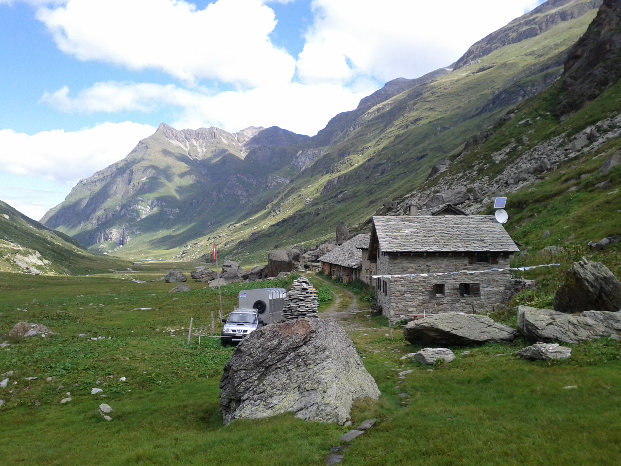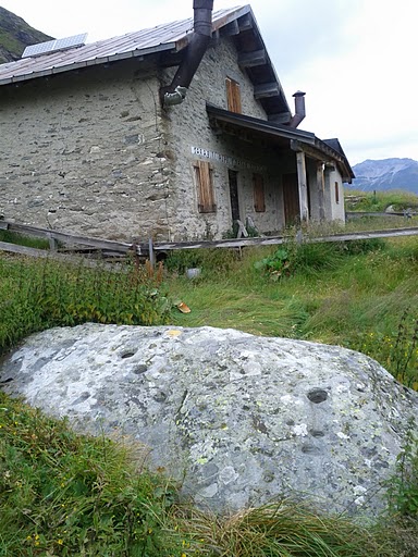 Gion Fluregn Grischott told me this last night. But he wasn’t talking about the huge hydropower dam he’d just taken me inside of. He was pointing to a place on the map about two kilometers away, beside the trail I’d be hiking in the morning. There, at an alp age called Ganda Nera, is a large stone with holes drilled into it. I’m sitting on this stone now. The holes were chiselled somewhere between four and five thousand years ago and seem to be a seasonal sun dial. Place sticks in the holes and the shadows will fall to tell you whether the solstice is coming or past, and other seasonal changes ancient peoples needed to know.
