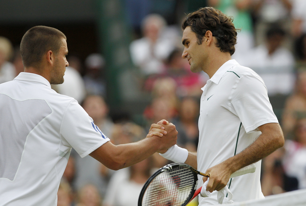 The first set went to a tie-break, which Youzhny, seeded 18th, eventually won 7-5, fighting back to overcome Federer’s 4-1 lead.