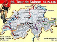 The eventual winner of this year's Tour de Suisse will have 1,451 kilometres of road and a total climb of almost 19 kilometres to overcome as the ten-day event grinds its way around the four linguistic regions of Switzerland.