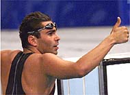 But although Lütolf was only expected to make up the numbers, he swam an extraordinarily fast first 50 metres, putting him in second place at the turn. The Swiss swimmer’s inability to maintain this pace for the final 50 metres was unsurprising – Lütolf usually specialises in the 50 metres breaststroke, but the event is not recognised at Olympic level.