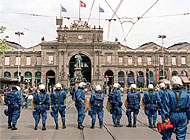 Riot police gathered outside Zurich railway station during a May Day demonstration Keystone