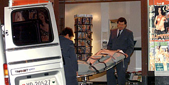Lausanne police said they received a call from a 41-year-old man who had been shot in the stomach. He phoned for help from a restaurant near the cinema.