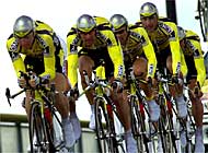 Once finished the 70 kilometre race from Nantes to Saint Nazaire, in just over one hour, 25 minutes. The defending champion, the American, Lance Armstrong, led his US Postal team into second place 46 seconds behind, followed by Jan Ulrich’s Deutsche Telekom team. The Banesto team, led by Switzerland’s Alex Zülle came in fifth.