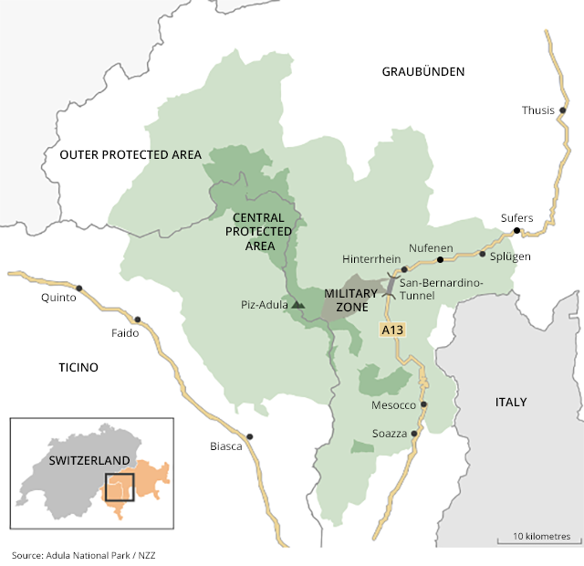 But only nine municipalities in cantons Graubünden and Ticino came out in favour. The project needed the approval at least 13 communes to pass. Voters in the municipalities of Blenio and Vals in the heart of the planned park, rejected the plans.