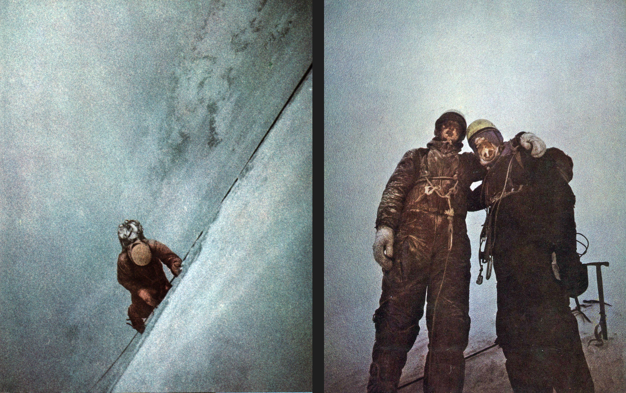 Bad weather made treacherous what were in ordinary circumstances very difficult climbing conditions. It became known as the slowest race on earth as the teams lived out of snow holes and pulled up equipment, the two sides scratching and crawling their way up the mountain face. Members would even descend for rest at the hotels near the base of the mountain, before climbing back up again.