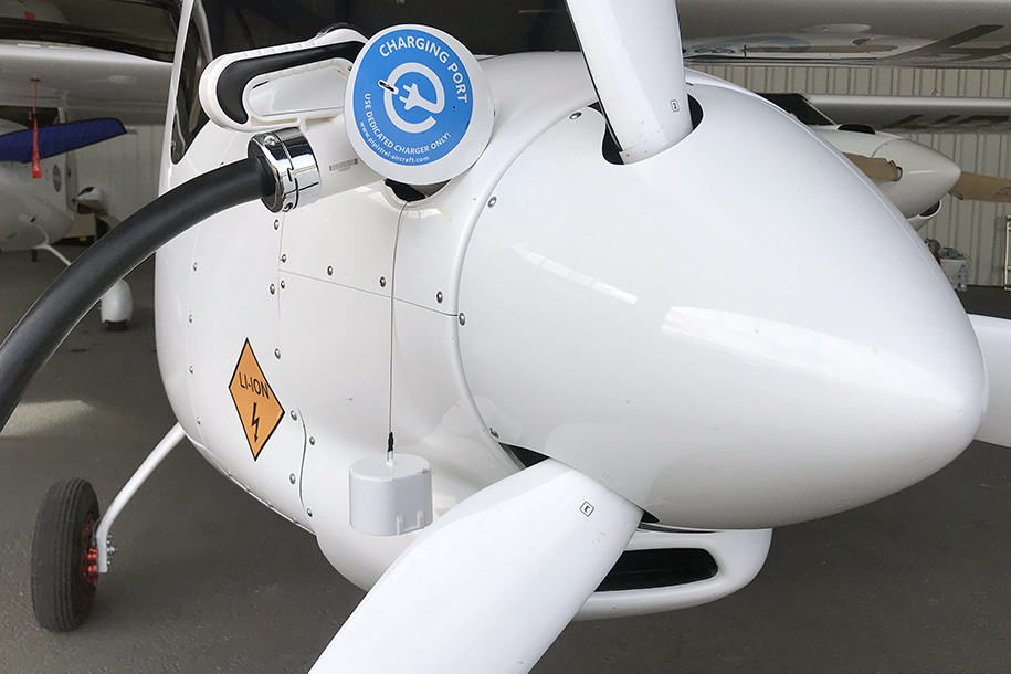 It has a 57.6 kilowatt hours (kWh), or 78 horsepower, electric engine, which is powered by two 11 kWh lithium batteries that offer a maximum flight time of 50 minutes, plus a ten-minute reserve.